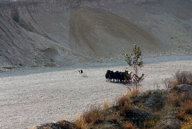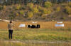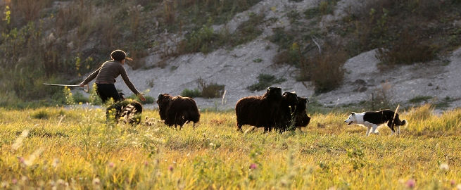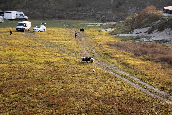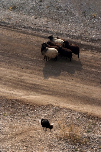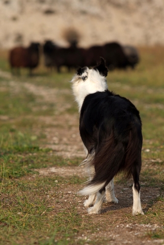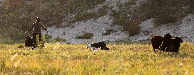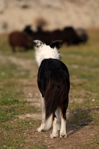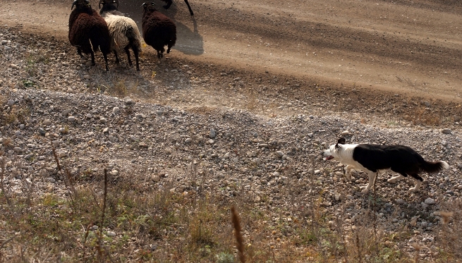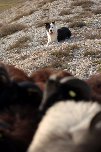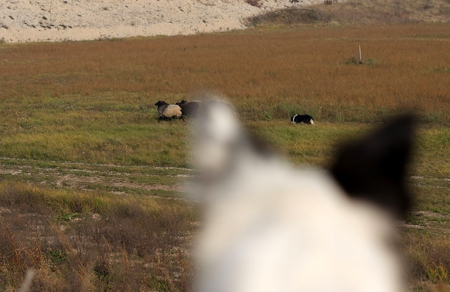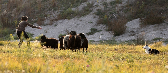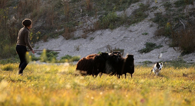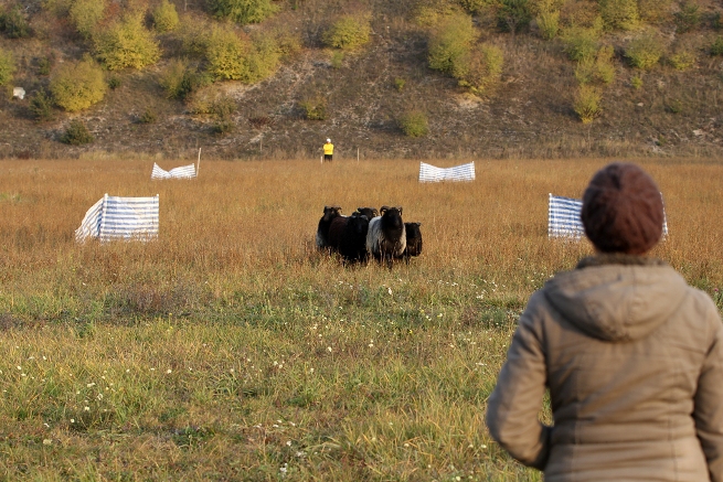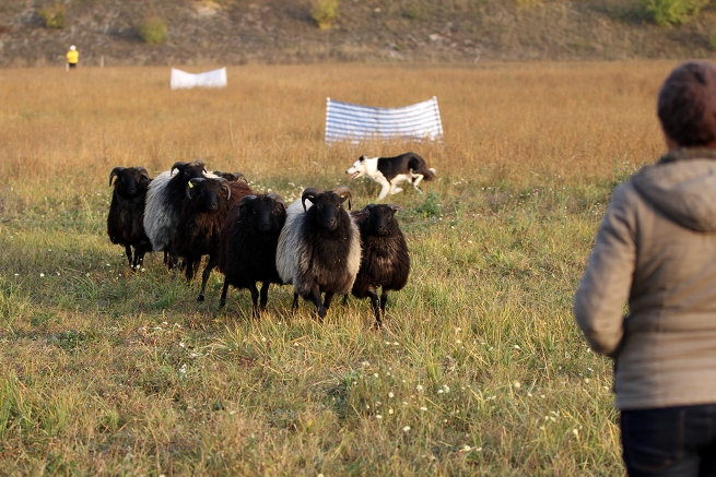 Hütebuddie Chip lädt zum Training ein und stellt der Xela die Schafe